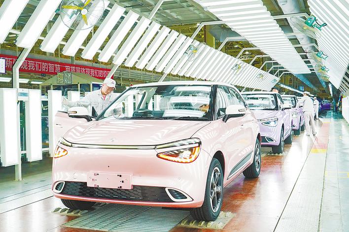 在一派科技襄阳工厂总装车间,一辆Nano 01整车下线。 (湖北日报记者 赵一兰 供图)