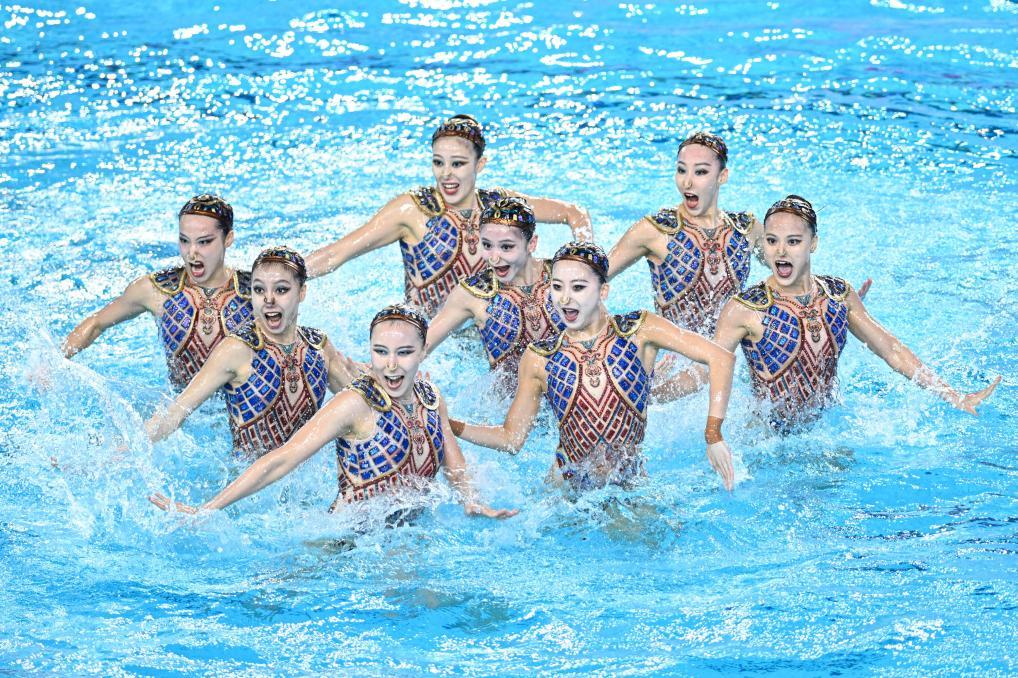 新华社江门11月14日电(记者马斯卡田建川)14日在广东省江门市,第十五届全国锦标赛花样游泳项目团体金牌决出。产生过多位奥运冠军的北京体育大学代表队取得了优异的成绩,以总分最高的成绩夺得冠军。北京队和四川队分别获得银牌和铜牌。 11月14日,北京体育大学代表队运动员参加花样游泳综合技能选拔赛。新华社记者陈忠浩供图。那天晚上是一个可选的团体技能活动。白体大代表队为观众带来了传统文化气息浓厚、节奏明快的《秦武士之魂》表演。高难度的举重和腿部动作令人眼花缭乱,他轻松获胜。 BSU团队也取得了成绩13日举行的团体技术自愿选拔赛和团体自由自愿选拔赛中,最终总成绩为867.9665分,领先第二名北京队84.3676分。姑娘们练习了三套动作:《秦兵马俑之魂》、团体技术选的《黑神话悟空》和团体自由选的《万有引力》。中国花羽队、北京体育大学队主教练张小欢表示:“我们对系列动作进行了重组,与奥运会、世锦赛等比赛相比,难度和冒险程度提高了很多,可以说当时的难度水平是难以想象的。我想看看女子的极限在哪里,我认为还有进步的空间。”颁奖典礼上,所有女学生都露出了欣慰的笑容。张小欢坦言没想到表演这么好我进入决赛了“新的球队阵容,投篮效果不错。” 11月14日,北京体育大学代表队运动员参加花样游泳通用技能选拔赛。新华社供图 陈忠浩 为何全国大会音量这么大?张小欢表示,在巴黎奥运会上获得团体和双人比赛历史性金牌后,中国队面临着更大的压力,正在努力实现更高的目标。 “在即将到来的国际比赛中,我们不仅要呈现出优秀的作品,还要完美地表现出来,展现出更大的实力,争取更好的成绩。”张小欢说,国家整体水平正在迅速提高,他们也发现了优秀的球员,未来打算为国家队补充这支新鲜血液。当天的综合技能自选赛中,四川队获得213.1499分积分仅次于北京体工队,最终以773.6233分升至第三位。尽管香港队排名较低,但公众欢呼雀跃。女队的八名成员都是仍在上学的“2005年后”学生。因为白天功课很忙,所以只能晚上七八点放学后一起训练,直到晚上十点左右结束。我很高兴。“这就像我的‘主场’。”19岁的香港队队员朱建勇表示,他感到非常幸运,有机会与自己最喜欢的顶尖球员近距离互动并向他们学习。